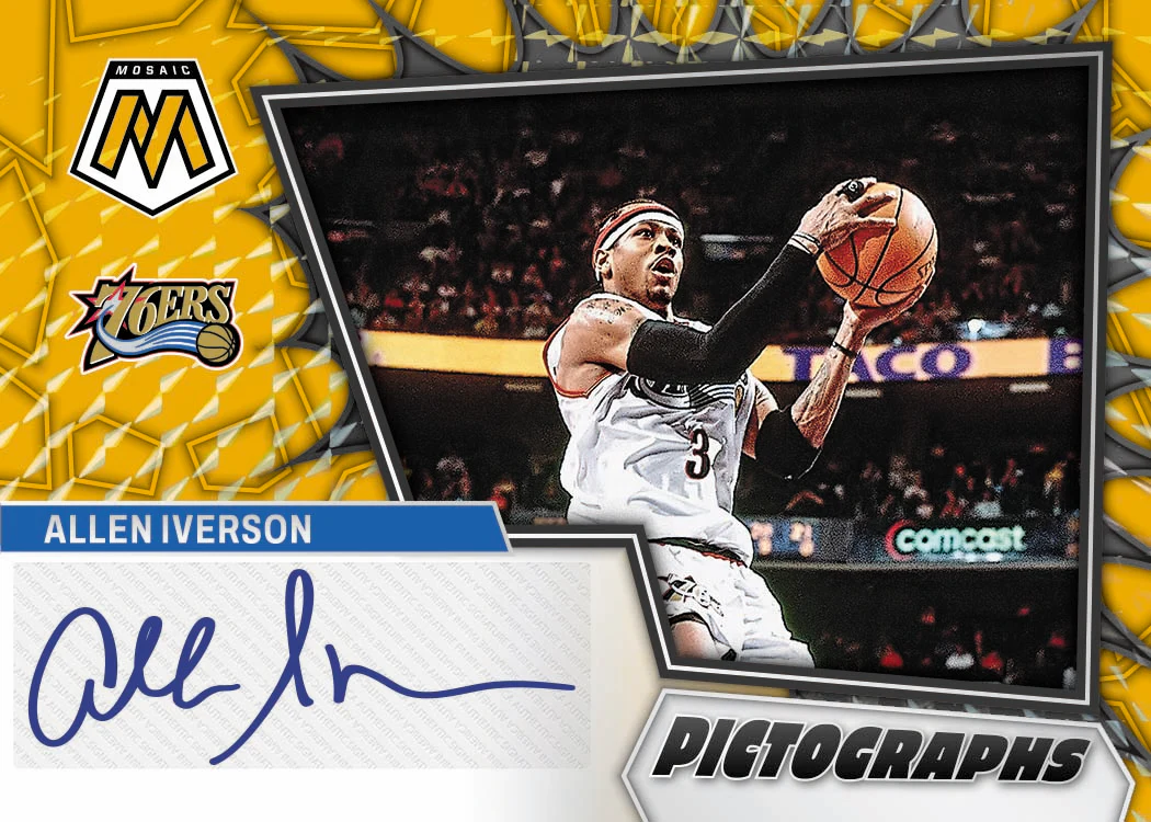 Find Autographs of the top NBA stars and rookies in Autographs Mosaic & Rookie Autographs Mosaic! Find the new Hobby-Exclusive Blue (#'d /49 or less) Parallel, as well as the Gold (#'d /10) and Black (1-of-1) Parallels, that are randomly inserted! Search for new Autograph sets: Pictographs Mosaic and Collage Mosaic! Find in Hobby-Exclusive Blue (#'d /49 or less) Gold (#'d /10) and Black (One-of-One) Parallels!